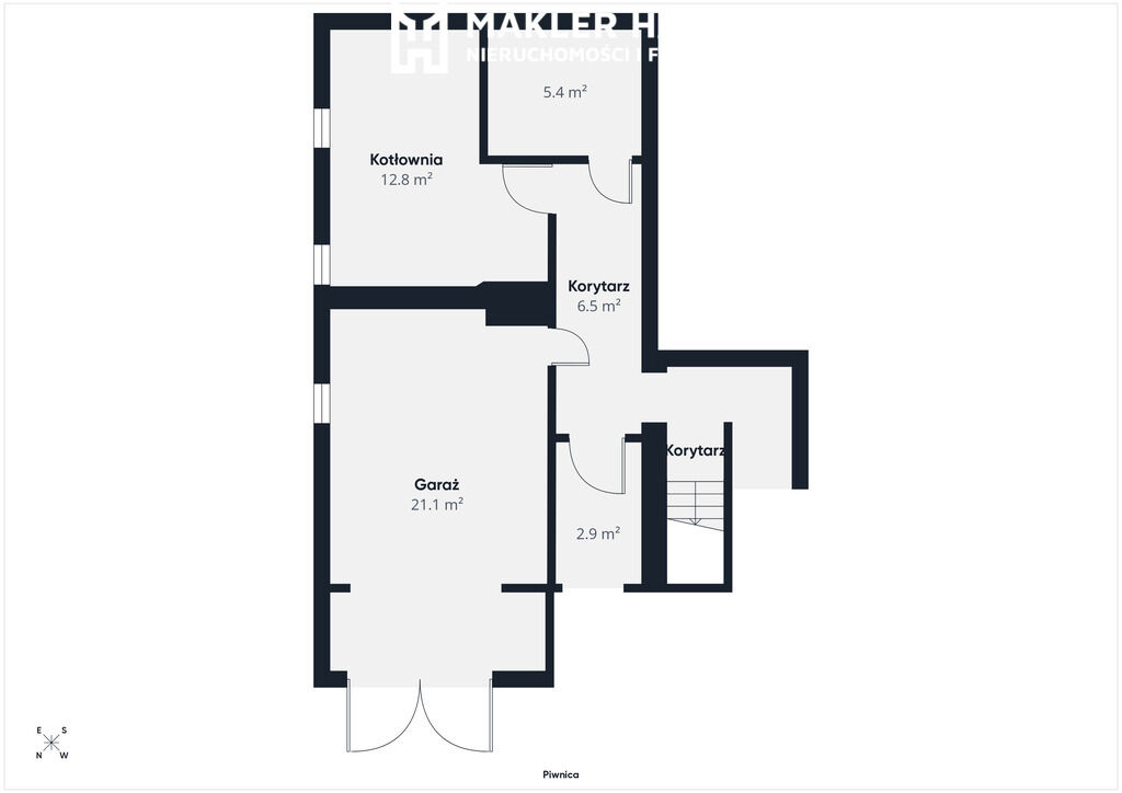 W piwnicy o pow. około 48 m znajduje się garaż, kotłownia z piecem
